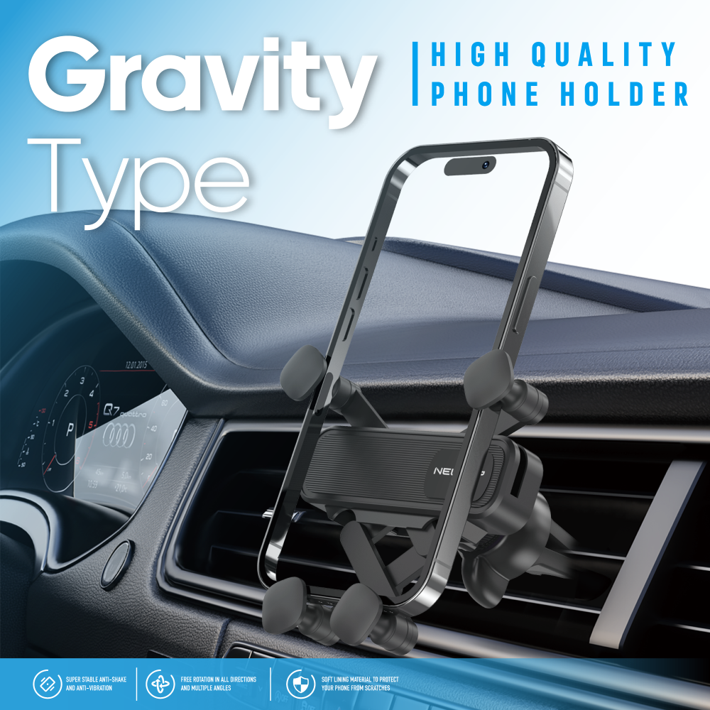 Sistema Gravity Lock: Il supporto si blocca automaticamente quando lo smartphone viene posizionato, sfruttando la forza di gravità per una tenuta sicura.