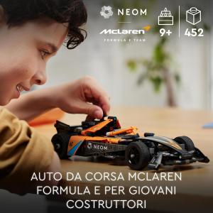 Veicolo giocattolo con sterzo funzionante: il modello NEOM McLaren Formula E Race Car è dotato di sterzo funzionante che permette di muovere le ruote dell'auto da corsa LEGO Technic, per offrire tante ore di gare entusiasmanti come in Formula 1
