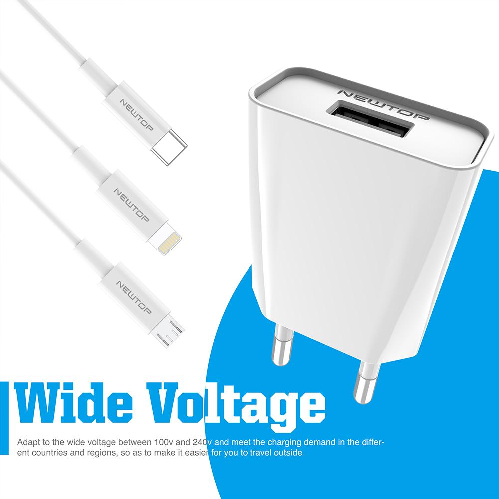 Carica il tuo smartphone grazie a questo caricabatterie da muro originale Newtop. Con 1 portA USB e una potenza in uscita da 1.0A.