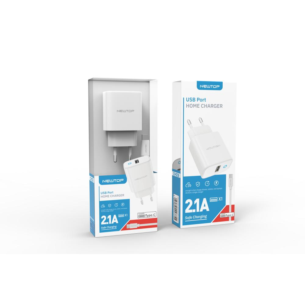 NEWTOP CM23 CARICATORE DA MURO SIMPLE 1 USB 2.1A CON CAVO TYPE-C
