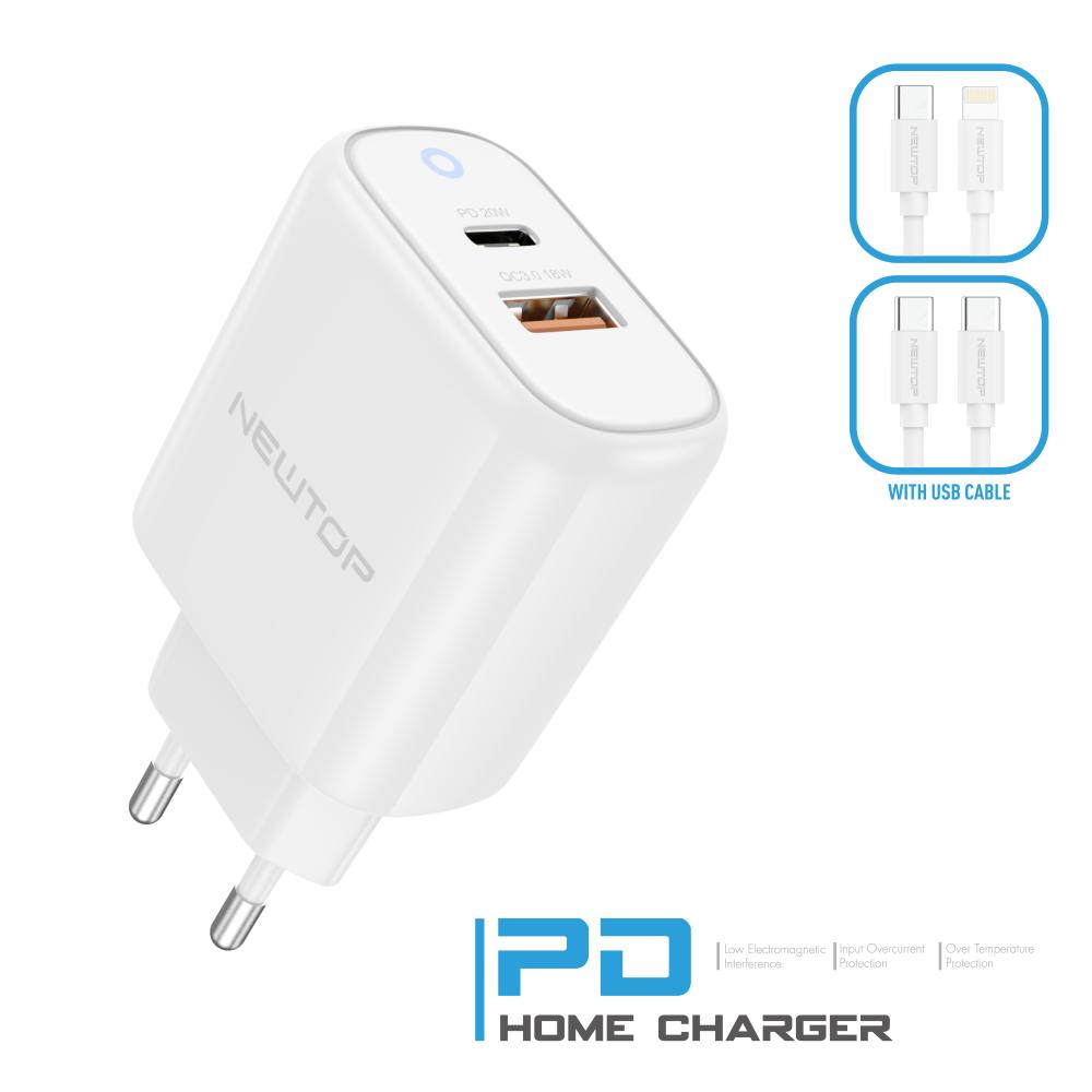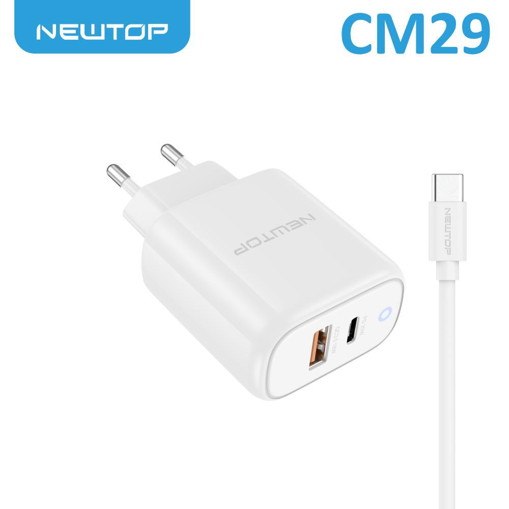 NEWTOP CM29 CARICATORE QC3.0 18W + PD 20W CON CAVO TYPE-C/TYPE-C