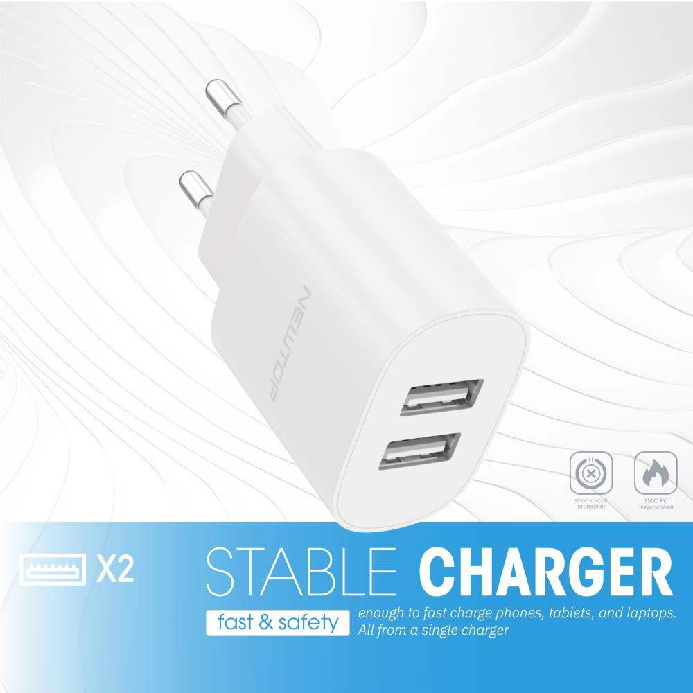 1 x Caricatore da Muro NEWTOP CM31 BASIC con 2 Porte USB 2.4A
