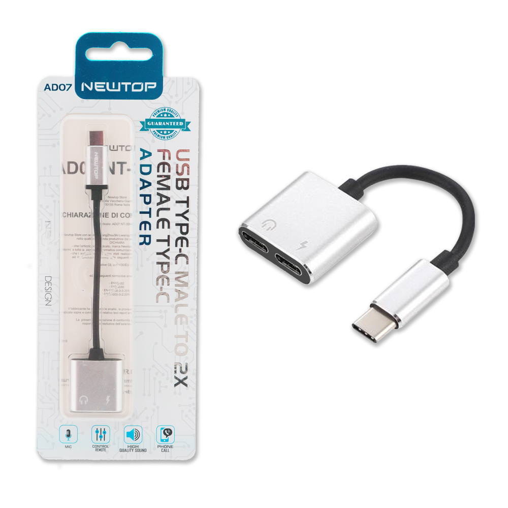 NEWTOP AD07 ADATTATORE SDOPPIATORE TYPE-C/TYPE-C + TYPE-C