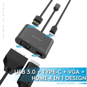 Adattatore USB-C 3.1 a HDMI/VGA/DVI/USB 3.0 Multiporta Supporta 4K*2K, USB Tipo-C Maschio a HDMI (HDMI Tipo A) Femmina, VGA Femmina, DVI Femmina e USB 3.0 Femmina, Compatibile con la maggior parte dei Monitor, Proiettori, HDTV o Altri Dispositivi con interfaccia HDMI/VGA/DVI.