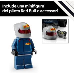 Macchina LEGO Red Bull da collezione con minifigure: il kit include una minifigure di un pilota di F1 con tuta Red Bull e casco, posizionabile all’interno dell’abitacolo della monoposto di Formula 1