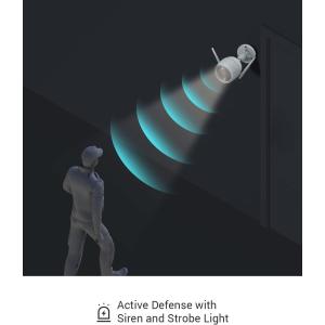 Dotata di difesa attiva con sirena e luci stroboscopiche, dissuade efficacemente i visitatori indesiderati. Il rilevamento movimento avanzato con intelligenza artificiale distingue persone da altri movimenti, riducendo i falsi allarmi.