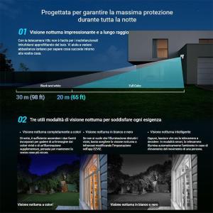 Il sensore PIR garantisce un rilevamento preciso dei movimenti, mentre la funzione di human detection distingue le persone da altri oggetti per ridurre i falsi allarmi. L’audio bidirezionale consente di comunicare in tempo reale con chi si trova davanti alla telecamera.