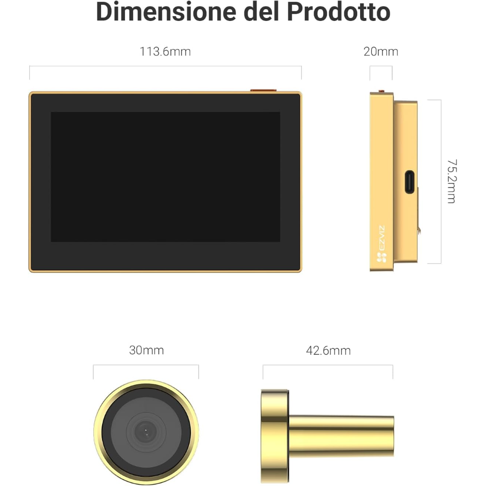 EZVIZ HP2 (OTTONE) - SPIONCINO SMART 2 MP - WIRELESS - DISPLAY A COLORI 4.3" - VIDEO LIVE