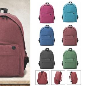 Zaino classico screziato dai colori melange. Scomparto principale con tasca frontale con cerniera e uscita cavi. Cerniere, tirazip, impugnature a contrasto. Dimensioni: cm 30 x 40 x 12.